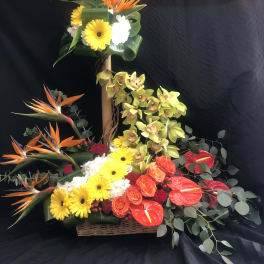 Price: $175.00 Orchids, bird of paradise, Gerber daisies, cabbage flower, amaryllis Product Tags: Same-day Delivery